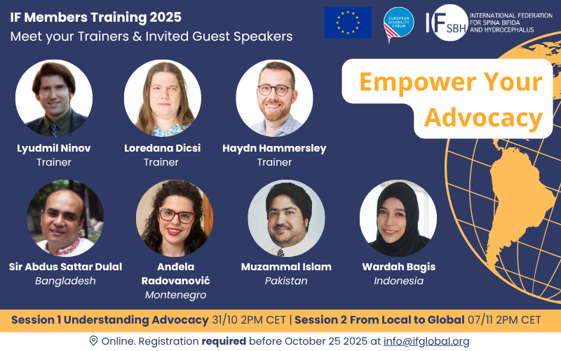 Persons with spina bifida and hydrocephalus (SBH) continue to face unique barriers to inclusion – from access to healthcare and education to full participation in community and political life. Empowerment and Advocacy play a vital role in challenging these barriers and promoting equality. This IF Members Training 2025, ‘Empowering Advocacy: Voices of Persons with Spina Bifida and Hydrocephalus’, will strengthen the capacity of persons with SBH to speak up for their rights, influence change, and represent their communities locally and globally. Through peer-led sessions, interactive discussions, and real-life examples, participants will gain tools to become confident advocates for inclusion and human rights.