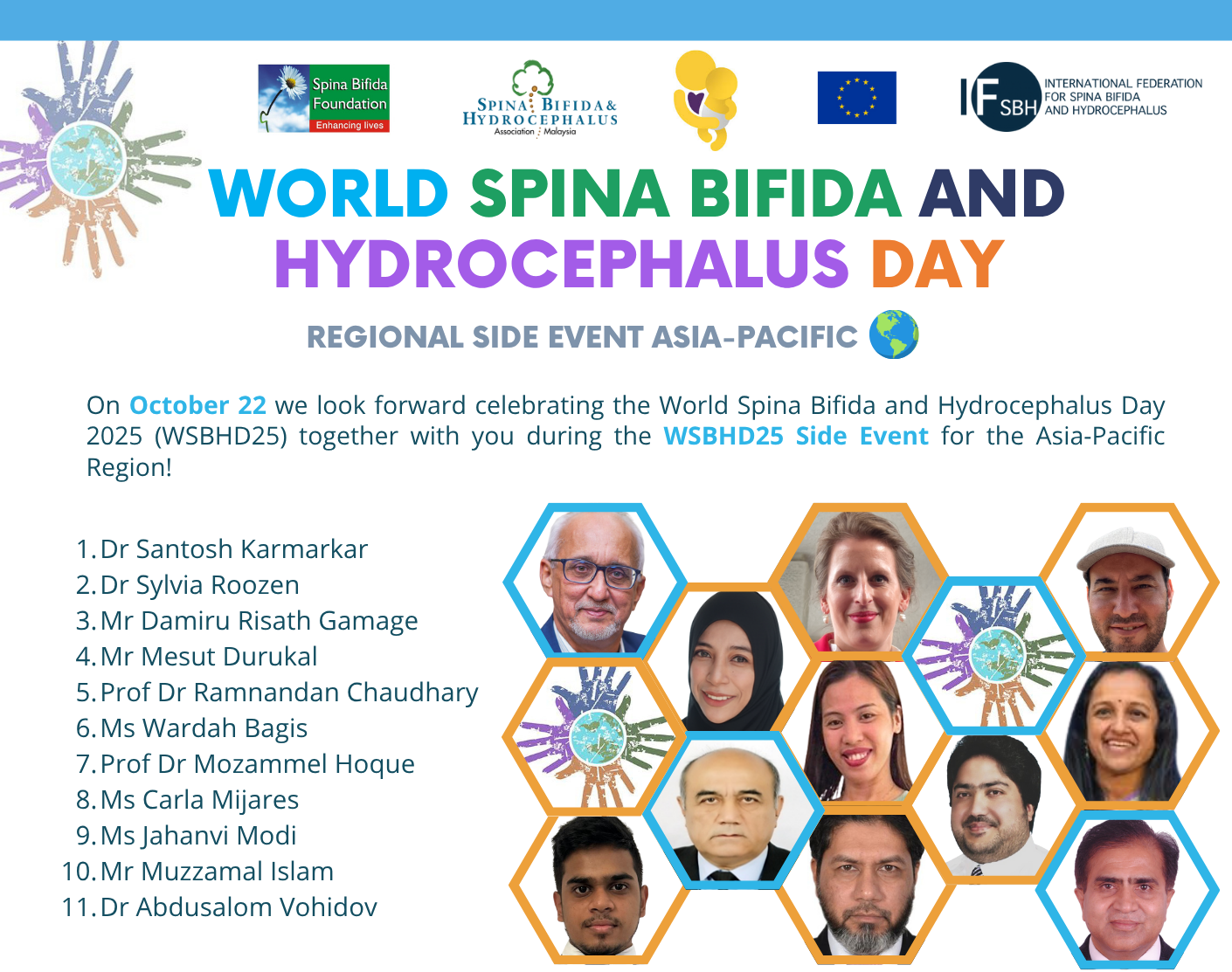 On 22 October 2025, the Asia-Pacific region will gather virtually for the World Spina Bifida and Hydrocephalus Day (WSBHD25) celebration through a dedicated Regional Side Event focused on ‘Accelerate Actions for Spina Bifida and Hydrocephalus’.