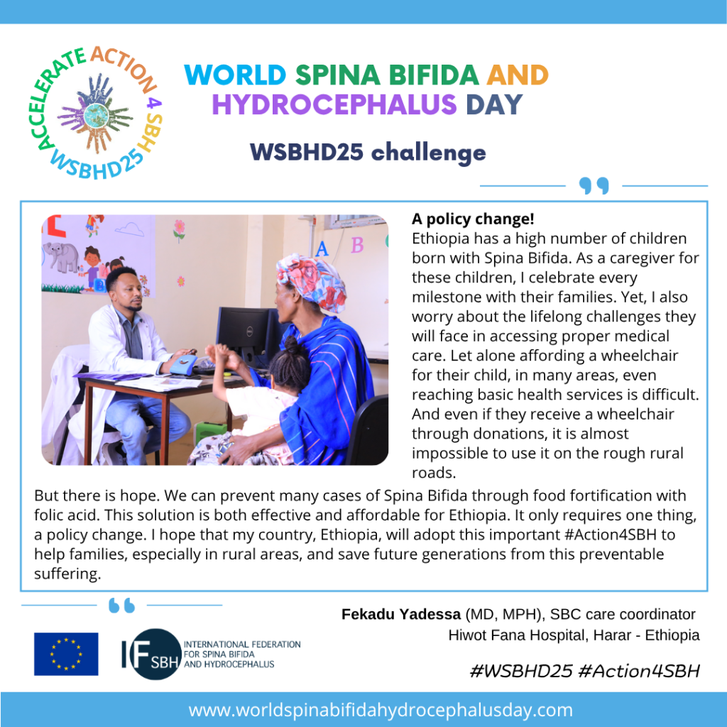 We are delighted to announce that this year’s WSBHD25 Challenge Winner is Fekadu Yadessa, whose entry received over 800 likes, comments, and shares across IF’s social media platforms (Facebook, Instagram, and LinkedIn). Through his powerful message, Fekadu called for #Action4SBH on prevention through food fortification with folic acid in Ethiopia.